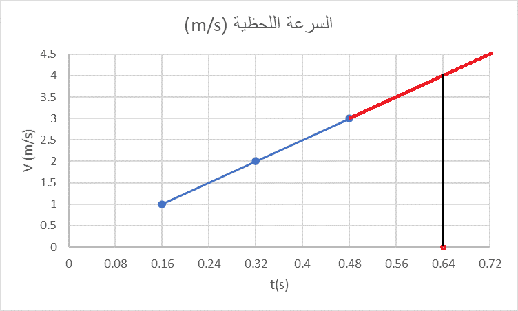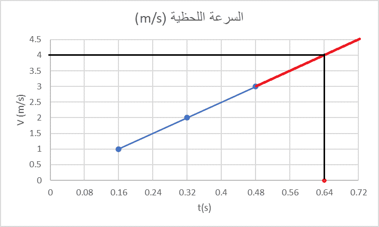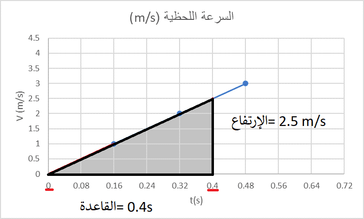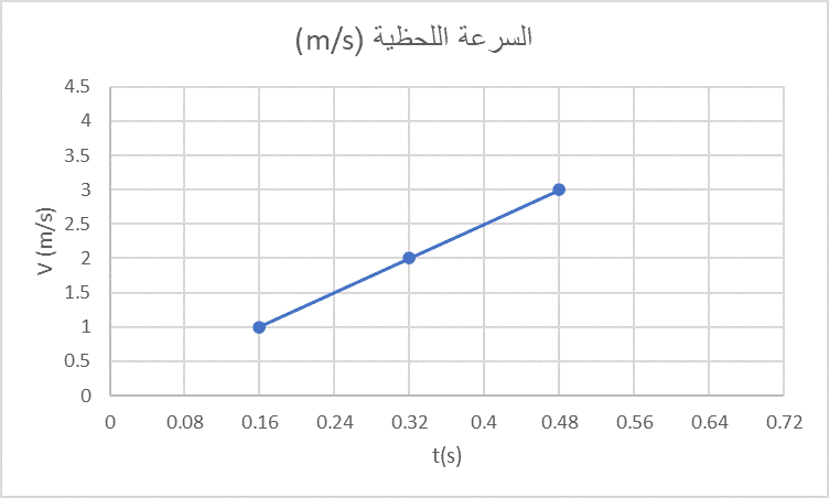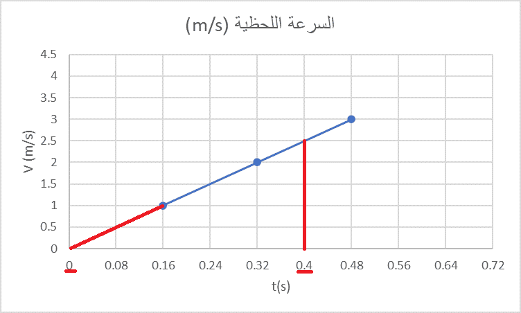 مثال: أحسب السرعة اللحظية باستعمال المنحنى البياني التالي:
