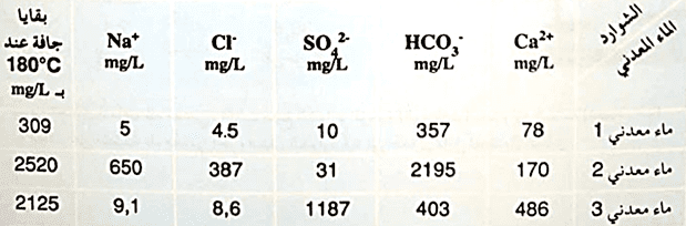 تحتوي المياه الطبيعة على الشوارد بكميات مختلفة حسب مكان تواجدها في الطبيعة و هي نوعان :